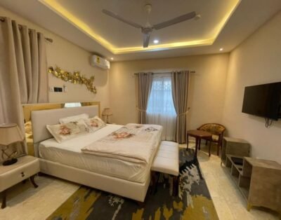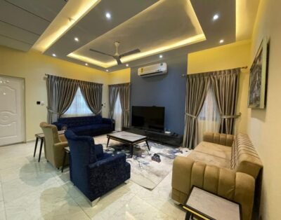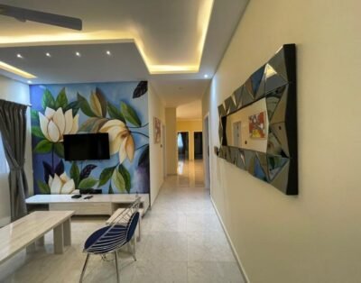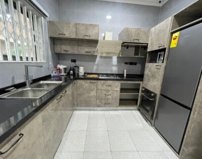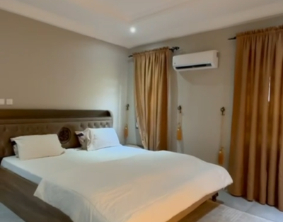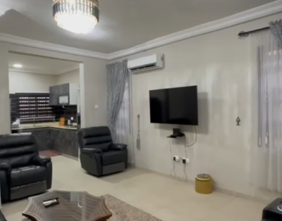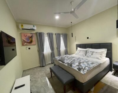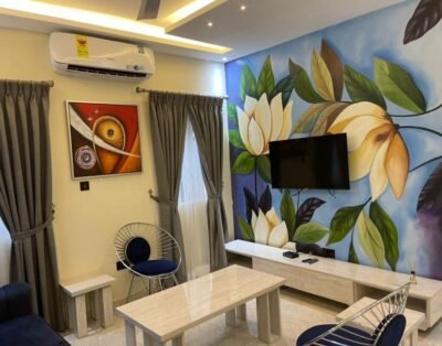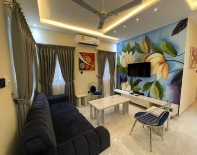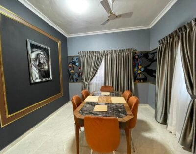 This stunning 3-bedroom house is located in a serene and quiet neighborhood. Designed and decorated with arts from Africa, one cannot help but have a feel of Africa. it features top amenities like a full-set kitchen, free electricity, DSTV, WIFI, Stand-by generator, a very big swimming pool, 24-hour security and daily cleaners. Easy access and just one bus away from the subway.